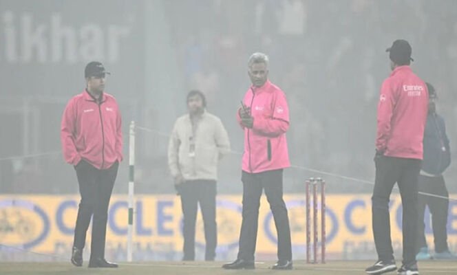 میڈیا رپورٹس کے مطابق ٹاس ہوئے بغیر 6 انسپکشن کے بعد میچ آفیشلز نے دھند کے باعث میچ ختم کرنے کا اعلان کیا۔